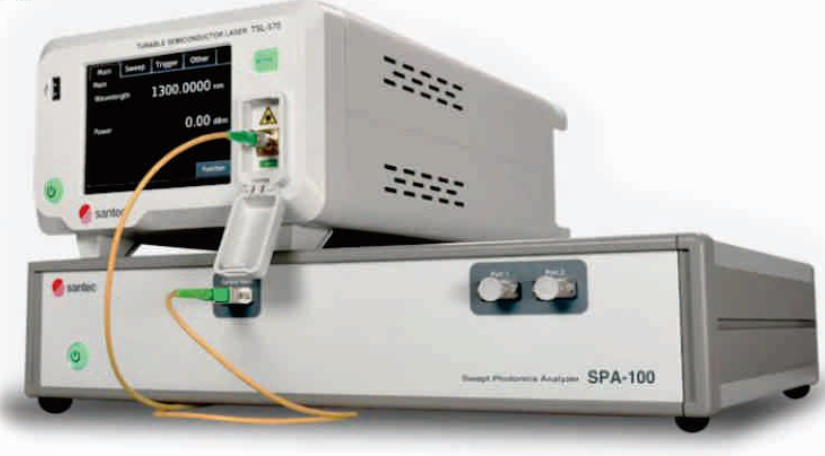 The SPA-100 is a compact Optical Frequency-Domain Reflectometer (OFDR) add-on module for Santec’s tunable lasers. When paired together, the complete system enables the analysis of even the most compact and complex optical components, generating results for reflectivity, transmissivity, propagation loss, and the distance of specific events.