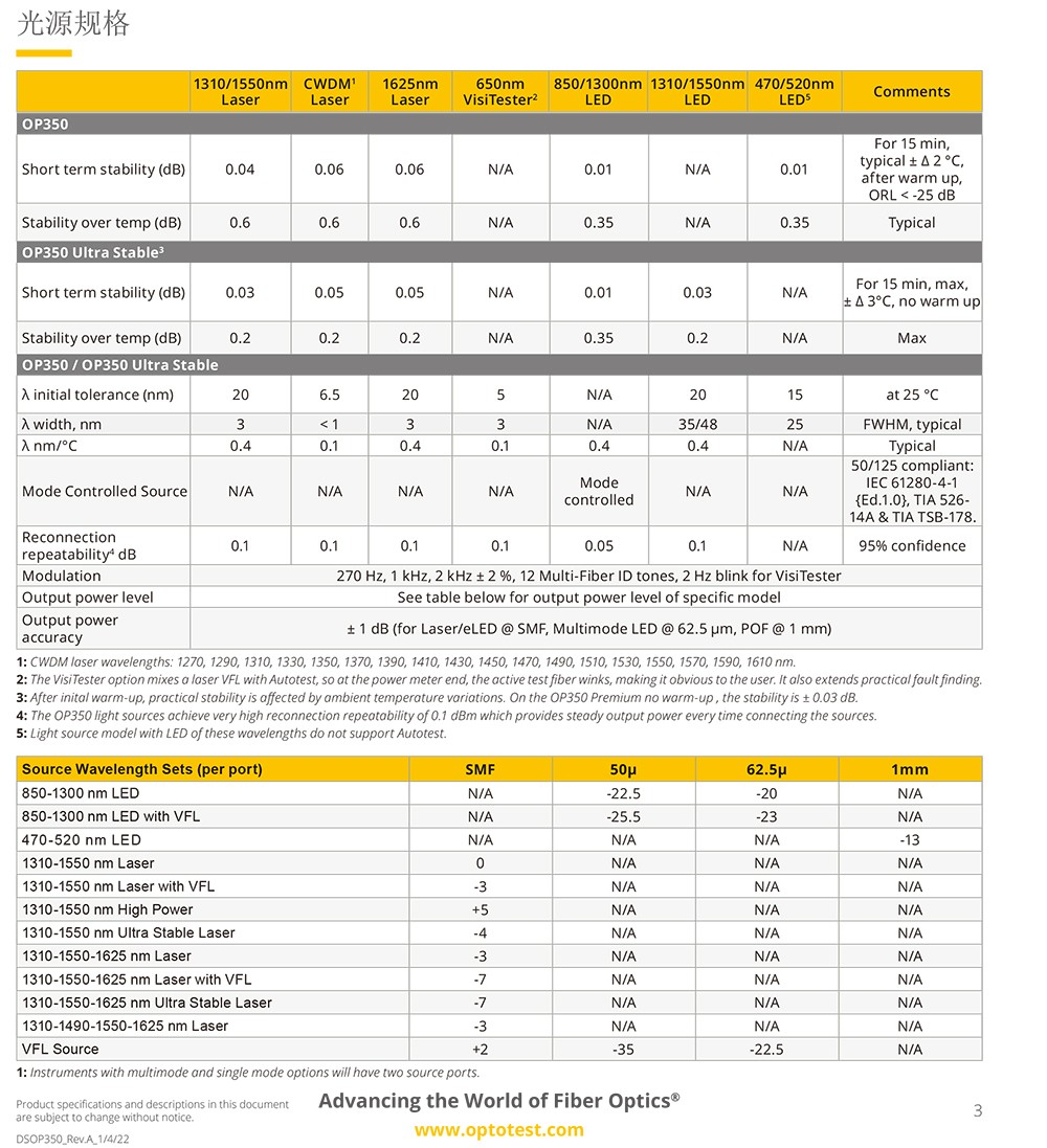 OP350提供多種型號(hào),包括僅LED、僅激光以及混合LED和激光源。LED光源的可用波長為470nm至1300nm,激光源的可用波長為1310nm至1625nm。超穩(wěn)定的 LED 和激光源可提供零預(yù)熱時(shí)間,非常適合在變化的光回波損耗 (ORL) 下進(jìn)行長期監(jiān)控和最佳性能。