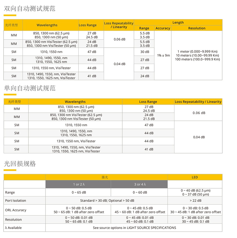 在自動(dòng)測(cè)試模式下使用一對(duì)OP360儀器,每根光纖只需一個(gè)測(cè)試連接和一次按一下按鈕,即可在多個(gè)波長(zhǎng)下實(shí)時(shí)顯示雙向插入損耗。OP360還提供光纖長(zhǎng)度和光回波損耗(ORL)測(cè)量選項(xiàng),為光纖管理員、安裝人員和技術(shù)人員提供強(qiáng)大而全面的測(cè)試解決方案。